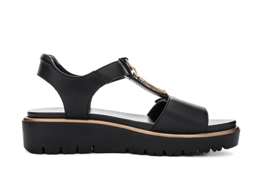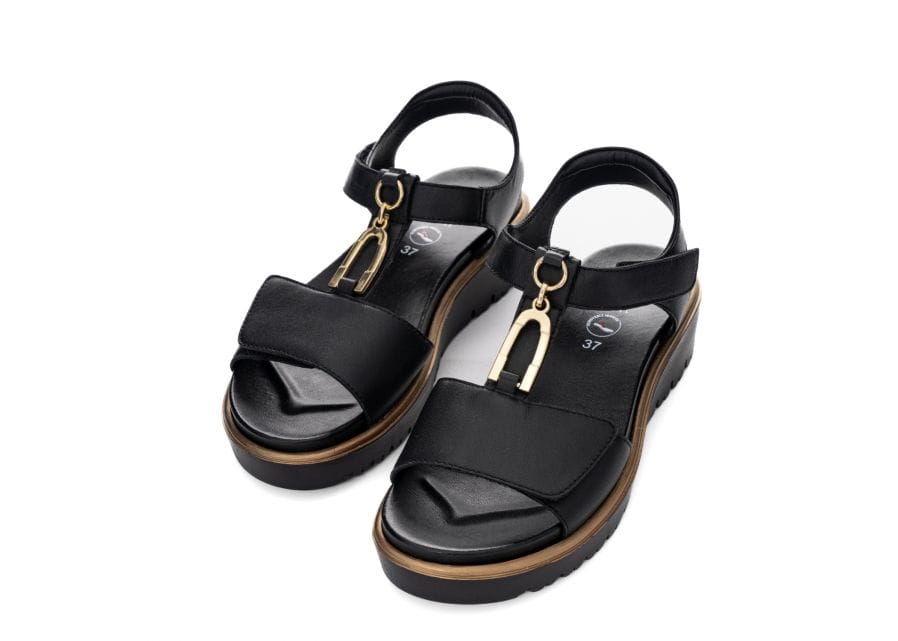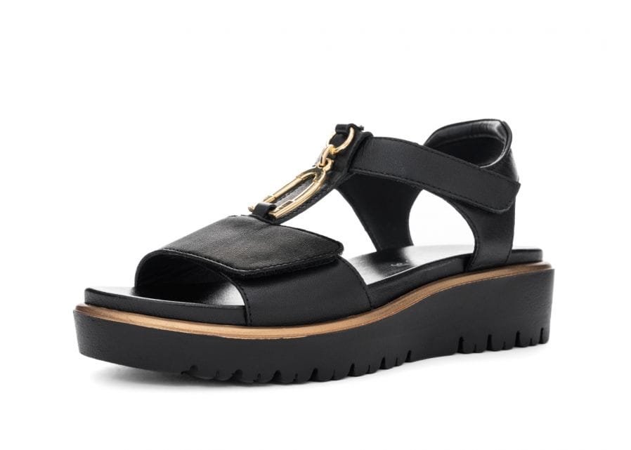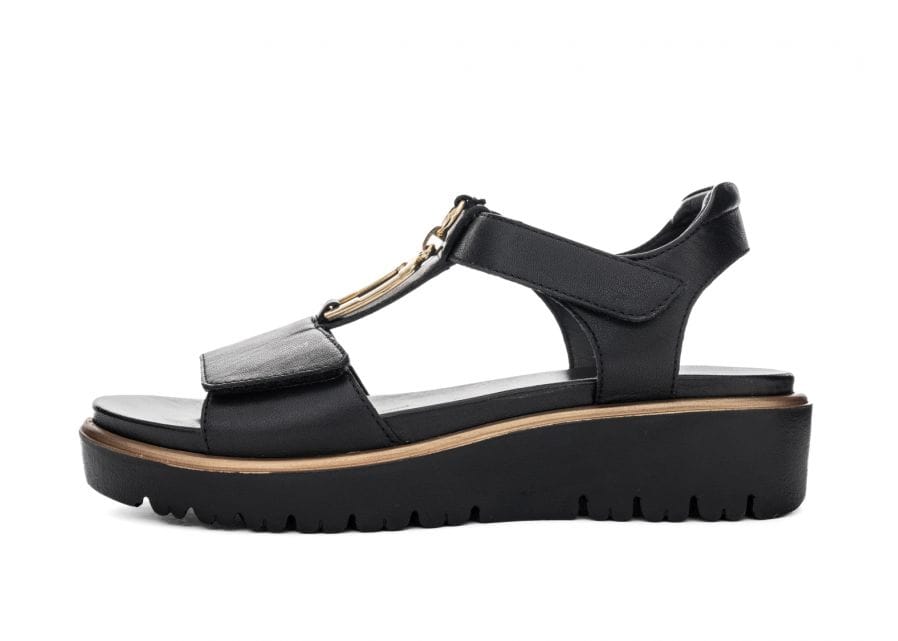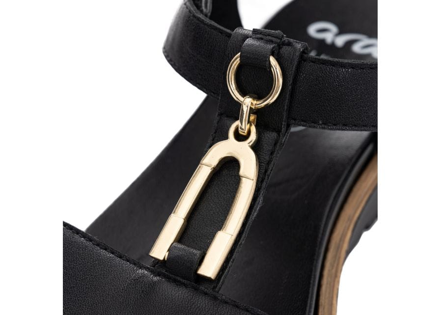 Ženski sandal Ara. Zgornji material mehko naravno goveje gladko usnje, podloga naravno goveje gladko usnje, Odstranljiv anatomski vložek iz mehkega naravnega govejega gladkega usnja z dodatno (HIGH SOFT) nogi prilagodljivo tehnologijo, podplat lahka rebrasta guma.