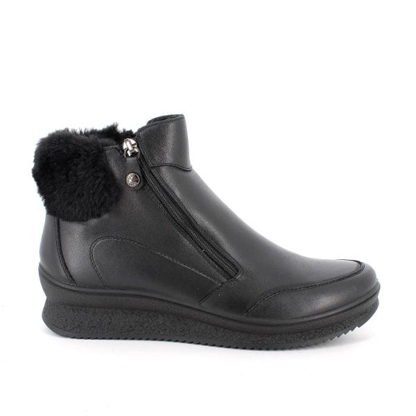 Ženski usnjen gležnjar na zadrgo Imac. Zgornji material goveje usnje, podloga topel flis tekstil, snemljiv vložek iz filc tekstila, mehak narebran proti drsenju gumi podplat.