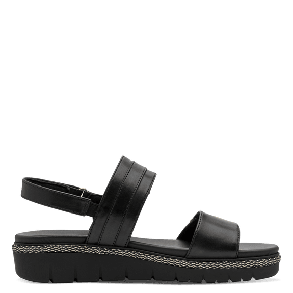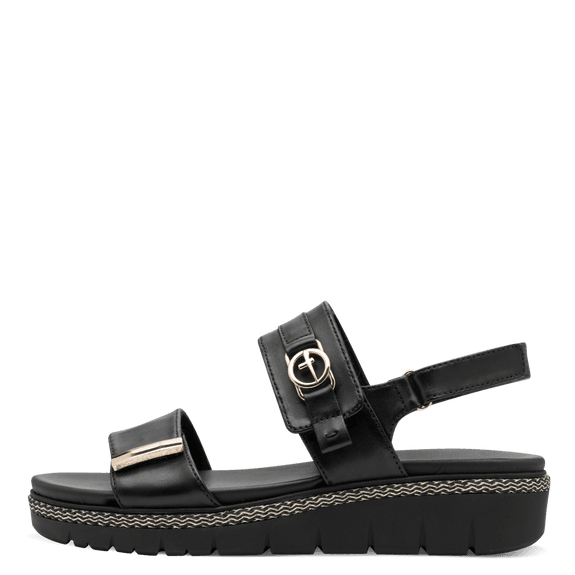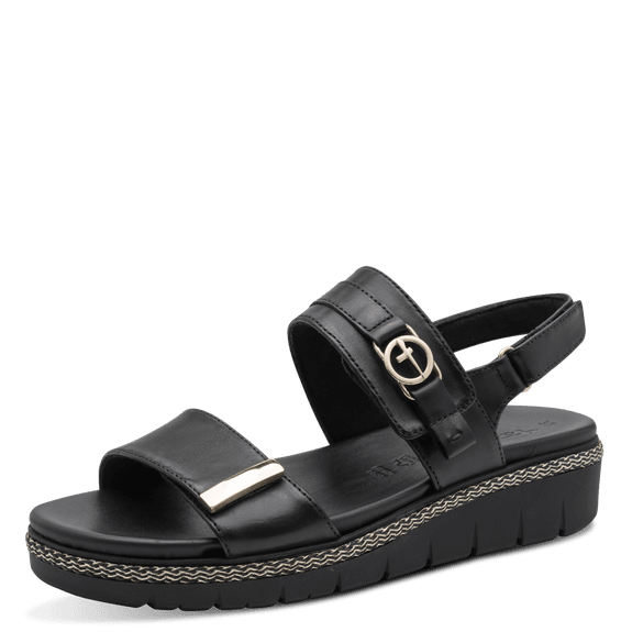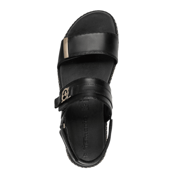 Ženski sandal Tamaris. Zgornji material naravno goveje gladko usnje, podloga mehak tekstil, snemljiv mehak anatomski vložek iz naravnega govejega gladkega usnja, podplat lahka rebrasta guma.